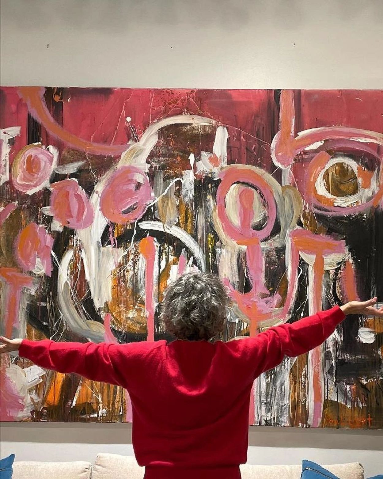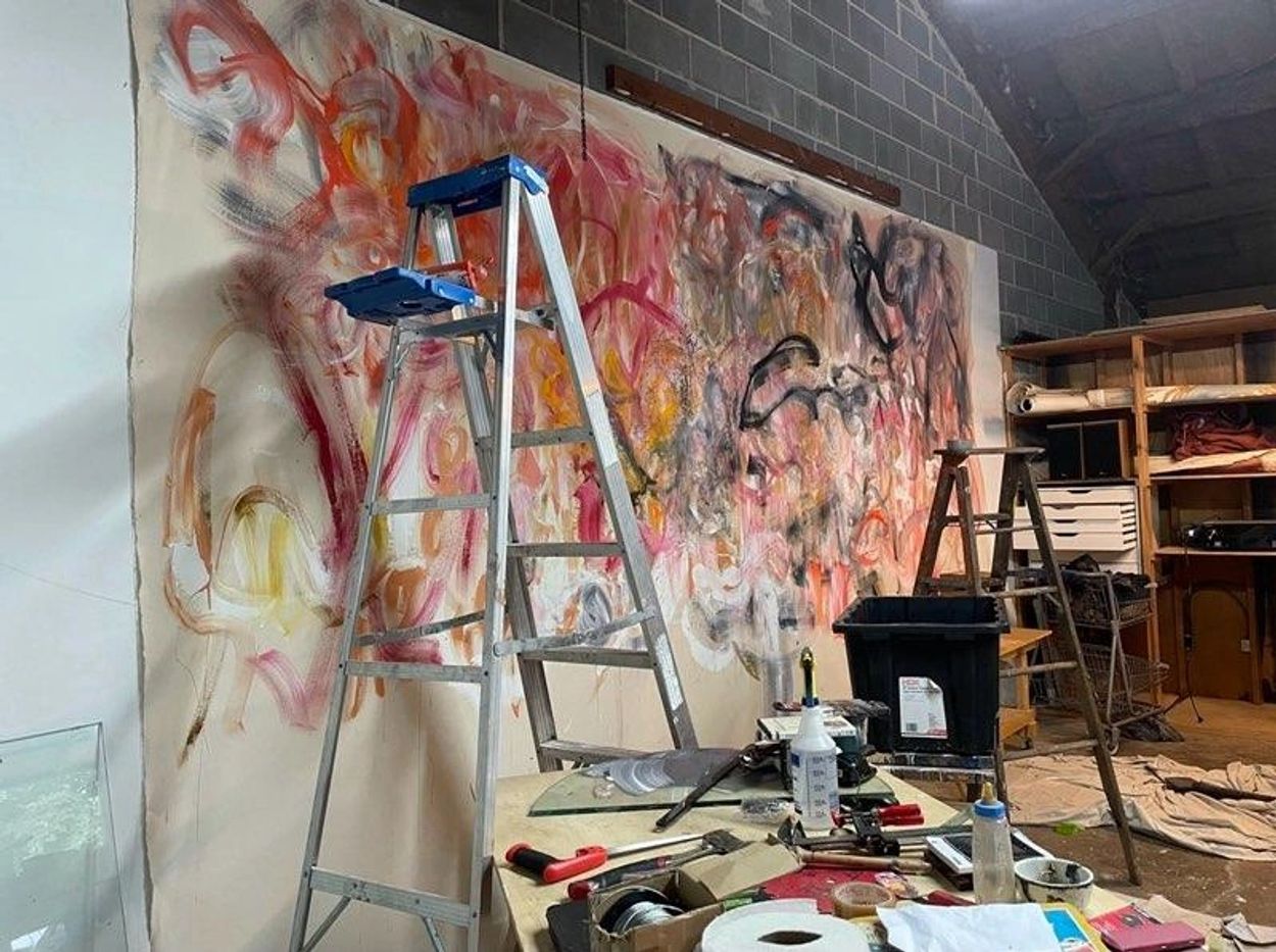 I work with the intent on creating vibrant, deeply emotional paintings that are full of controlled energy, and that are deeply layered with purposeful marks. As much as possible, I enjoy creating large-scale works that invite the viewer to encounter and experience them personally rather than to merely observe them from a distance.